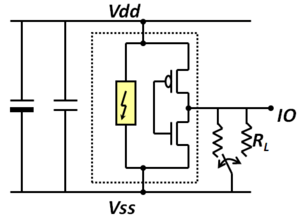 Such unexpected triggering can occur through different scenarios where noise is applied at the supply lines or IO pads