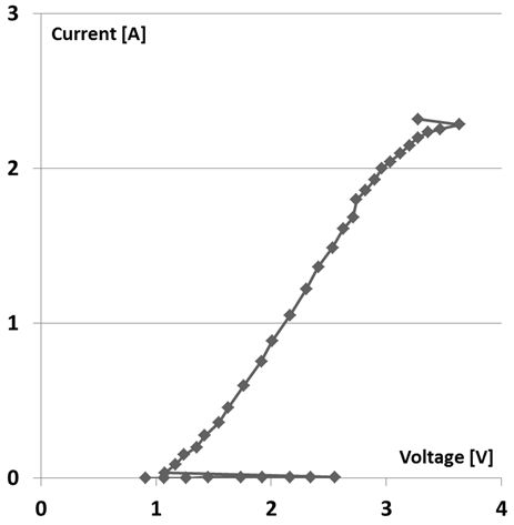- Eventually, at high current, the transistor is burned out (Figure 4, blue arrow).