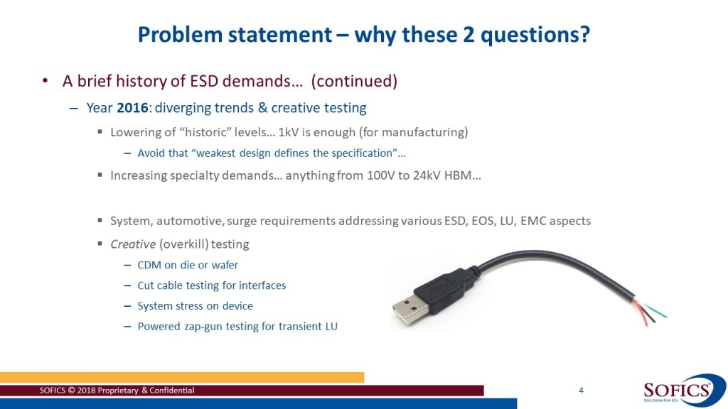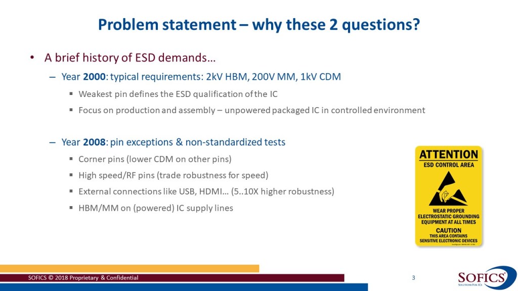 Sofics ESD-IP has been integrated into thousands of IC designs in the last 20 years. We have supported many different applications. Initially our customers asked for 2kV HBM, 200V MM and 1kV CDM but over the years these requirements have changed a lot. In the past the weakest pin combination defines the ESD robustness of an IC.