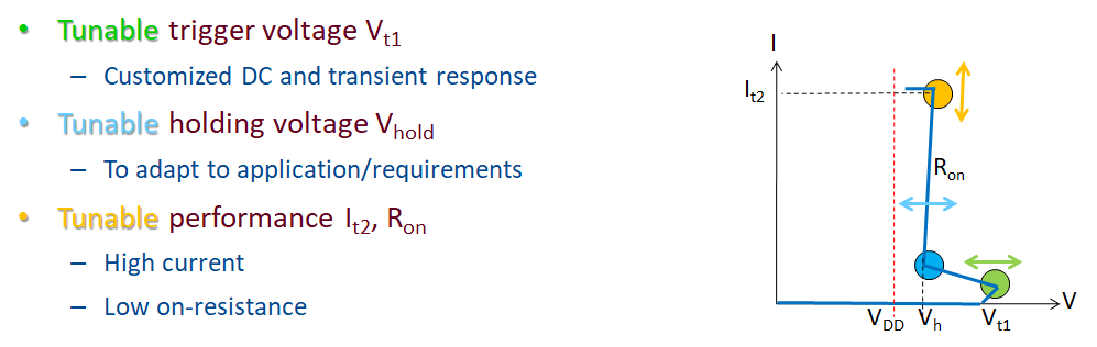 Contact us if you want to discuss your application with high signal voltage ESD protection requirements, even if your target process is not listed above. You can find more examples for ESD protection in BCD technology in this presentation.