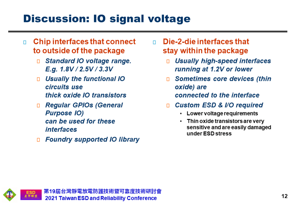 There is a clear difference between these 2 types for the relevant ESD requirement, the signal voltage and layout of I/O circuits and ESD devices. IC designers that use customized ESD cells can enjoy several benefits.