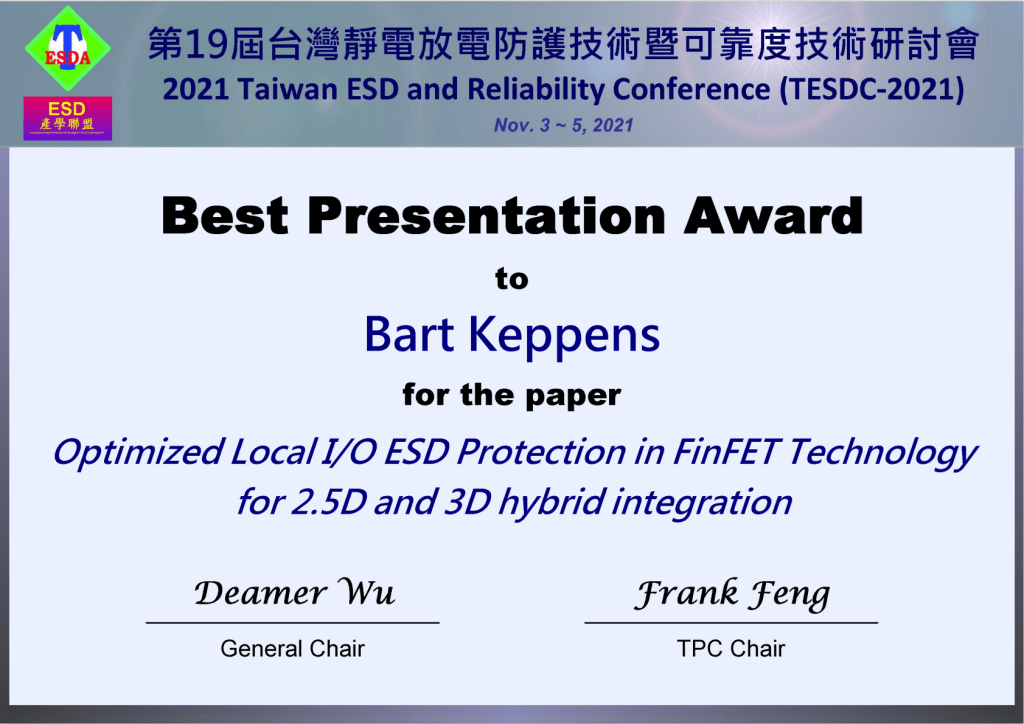 The Sofics abstract was accepted for publication and presentation at the 2021 Taiwan ESD and Reliability conference. Due to covid19 travel restrictions the presentation was pre-recorded. The video is available below.